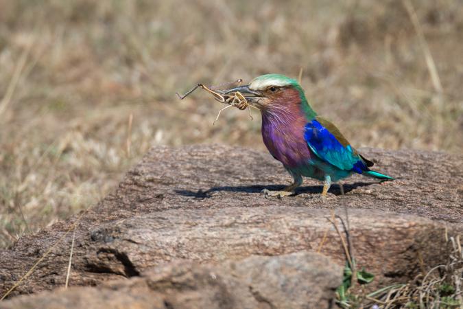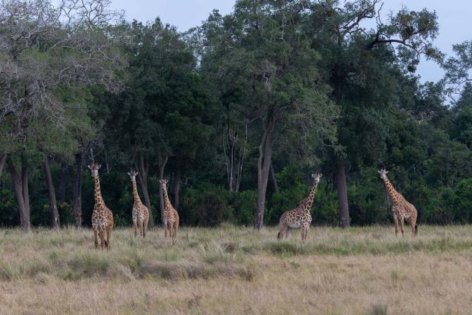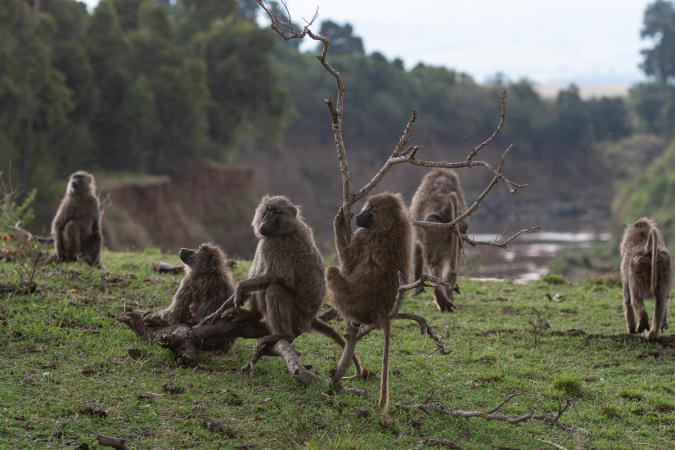 Then, we see our first elephants. Around 9:35 am, we stop at the edge of the Mara for a breakfast (sausages, eggs, pancakes, mini bananas, bread, jam, honey, coffee, tea, chocolate) accompanied by the hippos. At 10:30 am, we start again. Roller with long sprigs, baboons, impalas, elephants, zebras decorate this first morning.