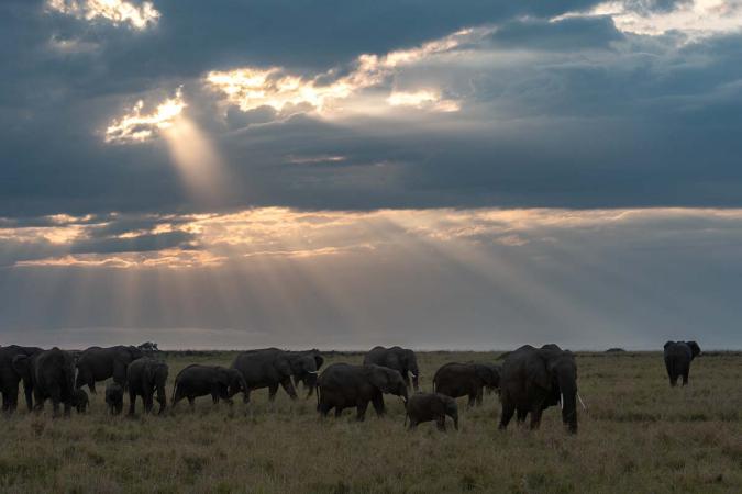 Monday september 6 : the day begins in the very first light with the meeting of a herd of elephants.
