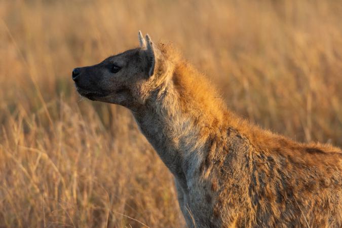 Friday september 13 : up at 5:30 am. Breakfast at 6 am. Safari at 6:30. It will be like that every morning! We join the 4WD and find our driver/guide David who proposes us the bars with the special hooks for the cameras and the been bags. By leaving the camp, we see a hyena. We attend a weak sunrise !