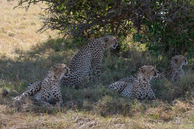 We meet then 4 cheetahs which arrive in the distance and come to lie under a tree in the shade.