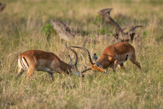If one day we return, we will not know if the big lions are the cubs of today. Then, we attend a fight of 2 male impalas who fight for the herd of females. The horns clash and snap.