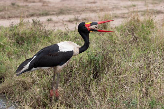 we see herons. Not far from there, a lioness hides under a shrub with her baby. The guide tells us that she had 2 but while crossing the river with a baby in the mouth, she dropped it and a crocodile made only one mouthful. What a sad story. A few kilometers later, we see a Thomson's gazelle in a funny position. Oh, she is giving birth, a baby has already the half of the body out.