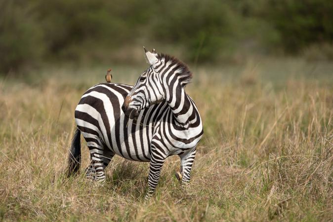 We are going to take the breakfast. But we shorten a little because we see zebras and wildebeests getting ready to cross the river. We park the 4WD and we wait... we wait... In the river, there is a sacred ibis, hippos and crocodiles. Some zebras approach the river, drink, think... then turn around. Others show up and do the same. Finally, a wildebeest gives the starting signal and several follow.