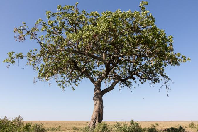 On the way he shows us a sausage tree. Indeed the fruits, which are not eaten, look like very big sausages.