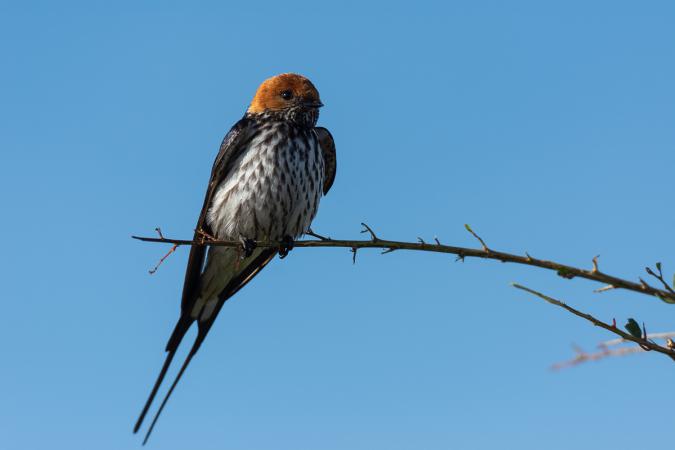 a varan, a reedbuck, a striated swallow,