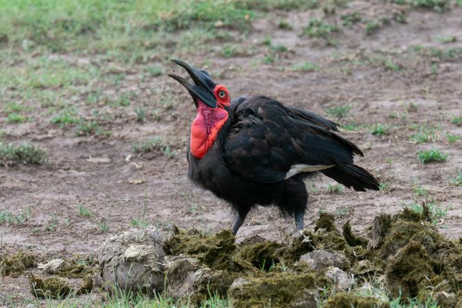 a ground hornbill that finds happiness in elephant poop, yuck!