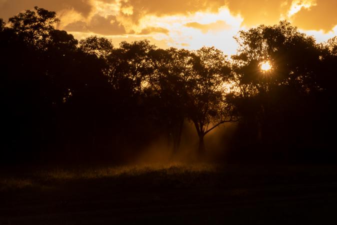 Monday April 10 : a week already gone! Beautiful sunrise with an elephant on the horizon.