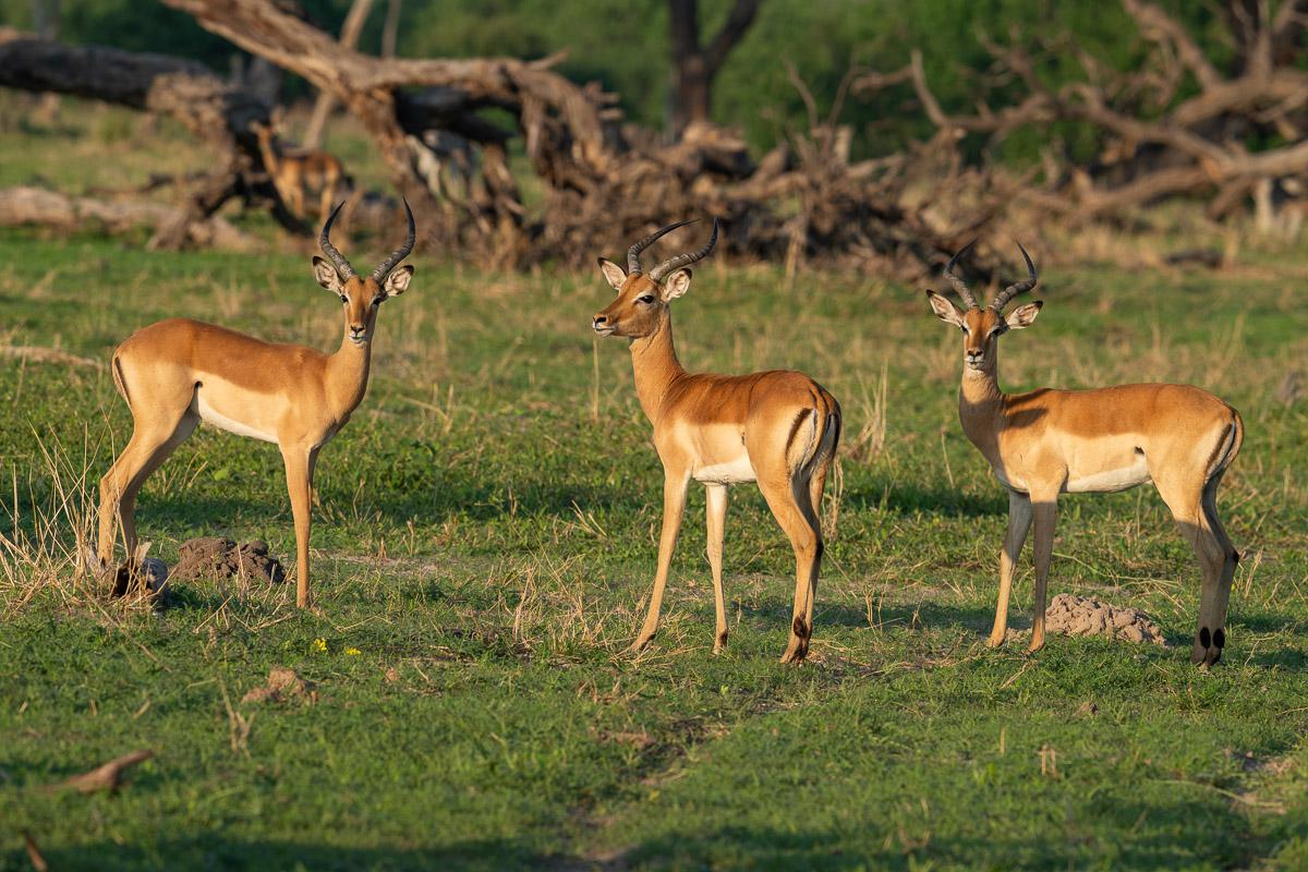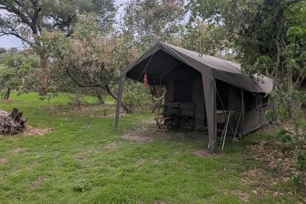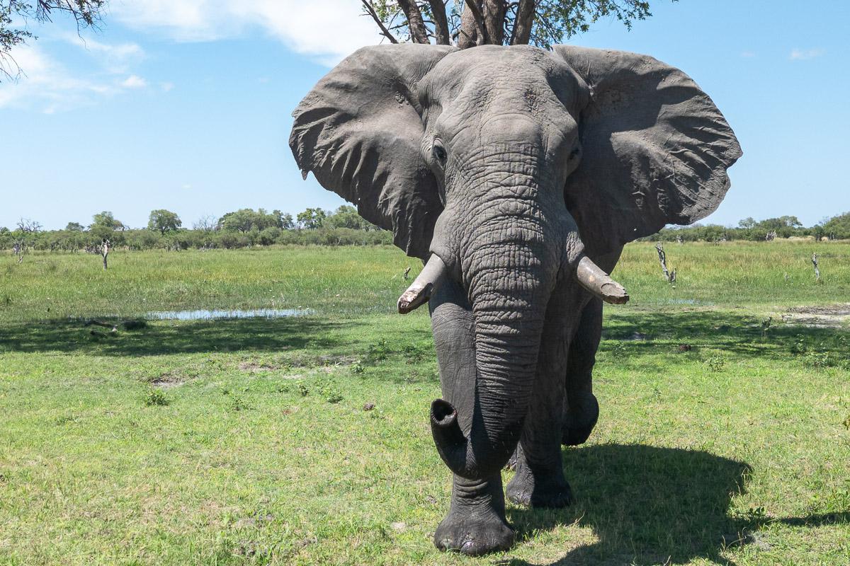 - Points positifs : plus vert et plus arboré que Moremi, quelques paysages sympas avec la rivière, possibilité de faire du hors piste, emplacement du camp très sympa, un éléphant tous les après-midis dans notre camp.