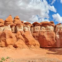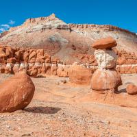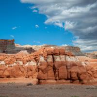 Accès : à Hanksville, à partir du croisement entre les routes 24 et 95, prendre la route 95 vers le sud pendant 32,8 kms (soit 20,5 miles) jusqu'à une piste sur la droite. Dès le début de la piste vous verrez 3 panneaux : l'un indiquant "14000", l'autre "Little Egypt Loop" et le troisième donnant les distances pour "North Wash", "Eagle Bench" et "Crescent Creek". Si vous voyez ça, vous êtes sur la bonne piste. Roulez sur 400 mètres avant de prendre à gauche sur cette piste pendant environ 2.5 kms ou jusqu'au panneau indiquant l'accès au site géologique. Il faut alors se garer sur le côté de la route et marcher quelques dizaines de mètres pour se retrouver au milieu des formations rocheuses.