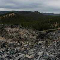 Newberry National Volcanic Monument is, as the name suggests, an ancient volcano. Its location almost in the center of Oregon marks a "border" between the east and the west: to the west, there are verdant forests while in the east, it is rather desert.