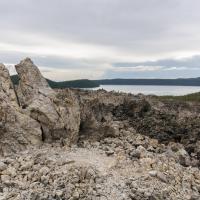 This park consists of several volcanoes and lakes. An area is particularly interesting : big obsidian flow. It is an ancient lava flow. The landscape is lunar, gray-black. Some rocks are perfectly polished and shiny. Signs indicate that Indians used these rocks to make their arrowheads. Other rocks are more like sponges. A trail of just over 0,6 mile permits to walk on this lava flow. A warning, however: these rocks are very sharp. It is better to have walking shoes and be careful to avoid injury.