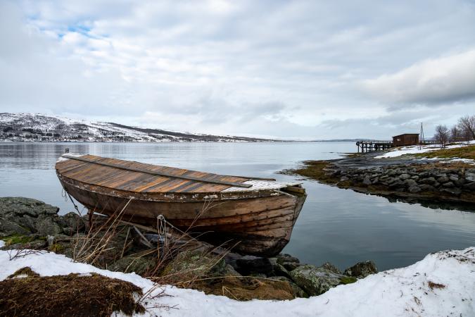 Il y a un vieux bateau en bois.
