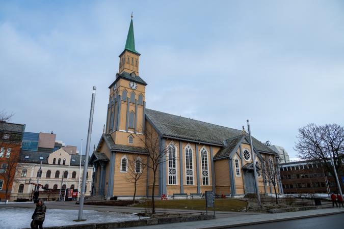 Mercredi 11 mars : debout vers 8h00. Départ à 10h00 pour Tromso. C’est couvert et il fait 5°. On se gare dans un parking souterrain en centre-ville. On se balade dans la ville et le port sous un peu de soleil. L'accueil devant une boutique de souvenirs :