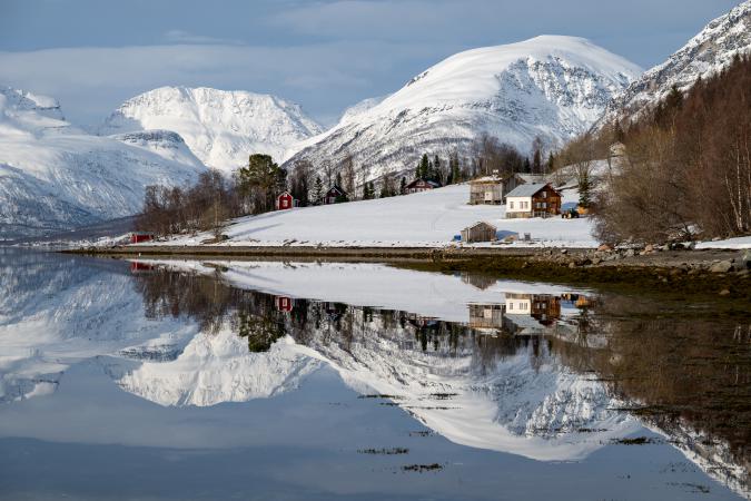 On passe Nordkjosbotn et plus loin en prenant la petite route Seljelvnesveien, on tombe sur un super spot avec de superbes reflets.