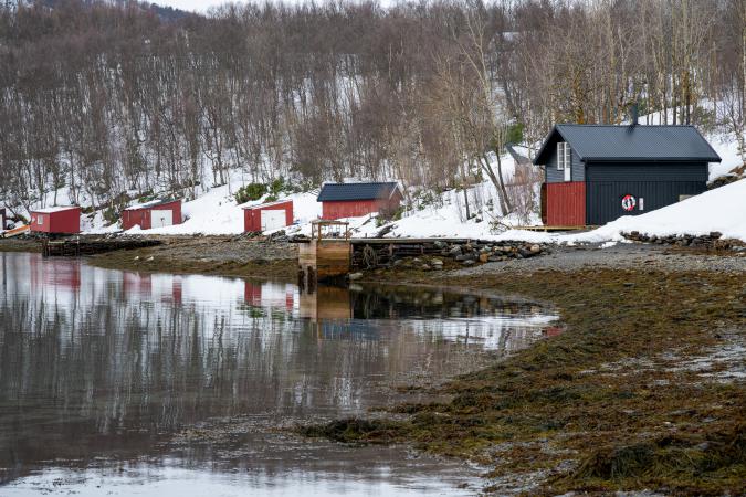 Lundi 9 mars : debout à 9h00. Encore un ciel couvert ce matin et il pleut un peu. Départ vers 10h45 pour aller faire des courses à Storsteinnes. Il neige tout fin et il fait 2°. Retour à la maison vers 13h00. On allume un feu dans le poêle à bois, trop bien ! Puis... on "moule" car dehors, c’est mauvais temps. Dure journée : goûter, moulage, apéro, dîner, moulage !! Dehors, la neige se transforme en pluie.
