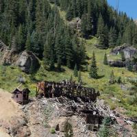 La piste qui mène à Yankee Boy Basin est une des nombreuses pistes de la région pour laquelle nous avons dû rebrousser chemin avant d'atteindre notre objectif, Twin Falls et Yankee Boy Basin. Mais la piste en elle-même vaut vraiment le détour. Elle passe par des chemins très étroit où deux voitures ne peuvent pas se croiser, avec une paroi rocheuse d'un côté et le vide de l'autre. Elle offre de somptueux paysages de haute montagne. Vers la fin de la partie la plus carrossable, à l'embranchement avec Govenor, on peut voir une ancienne mine.