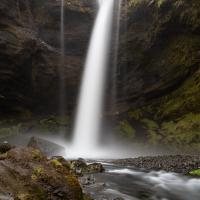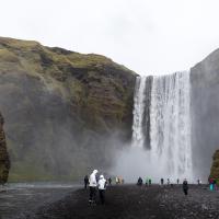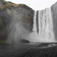Cascade très haute dans le village de Skogar. On peut se contenter de la voir d'en bas, mais il y a un chemin qui permet de monter jusqu'en haut de cette cascade. La montée n'apporte cependant pas grand chose si ce n'est la vue alentour.