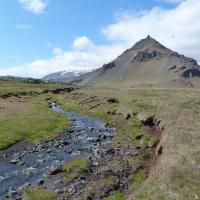Du parking de Djupalon, on a une vue superbe sur le volcan/glacier Snaefellsjokull. Pour la petite histoire, Jules Verne s'est inspiré de ce lieu pour démarrer son "Voyage au centre de la Terre".