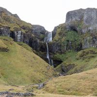 Très jolie cascade comme il en existe tant en Islande. Elle est totalement invisible depuis la route. Il faut faire une petite marche de moins de 5 minutes pour accéder au sommet de la cascade d'où on a une jolie vue sur un lac et sur quelques cratères. Il est possible de descendre au pied de la cascade.