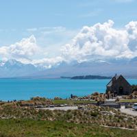 Le lac Tekapo est le plus connu des deux lacs en raison de l'église du Bon Berger (The Church of the Good Shepherd) et de ses lupins qui bordent la plage. Cette petite église attire beaucoup de monde bien qu'elle soit fermée.