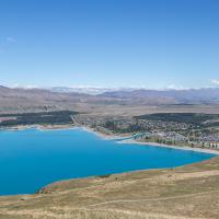 Pour une vue aérienne du lac et du village Tekapo, il est possible de monter (à pied ou en voiture) à l'observatoire astronomique du Mont John (Mt John Observatory Viewpoint).