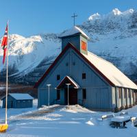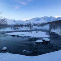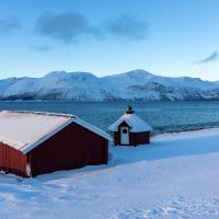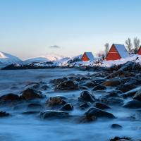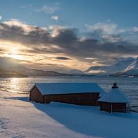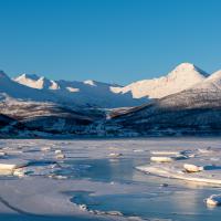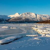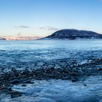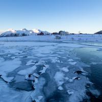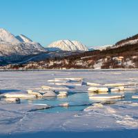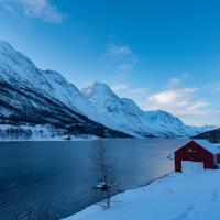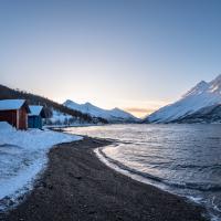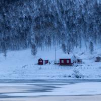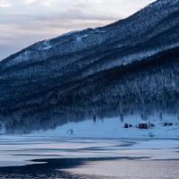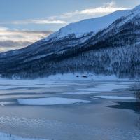 Just 1 hour from Tromso lies Sjovassbotn, the start of the Ullsfjorden fjord. We saw some very beautiful scenery here: ice debacle, small lake with “its vapors”, pretty red houses on the edge of the fjord.