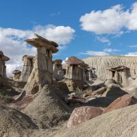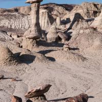 Site très isolé, très peu fréquenté. A l'image de ses voisins Bisti Badlands et Valley of Dreams, Ah Shi Sle Pah regorge de hoodoos aux formes et tailles très variées. L'endroit est très étendu et il faudrait plusieurs jours pour explorer tout le site. Toutefois, quelques heures permettent déjà d'explorer la zone la plus proche du parking qui est très dense en hoodoos. Certes, vous ne verrez pas les hoodoos jaunes mais il y a déjà beaucoup à voir dans cette zone.