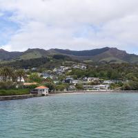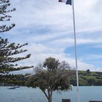 Akaroa est la plus française des villes néo-zélandaises. C'est en effet une ancienne colonie française. On y voit des panneaux de rues ou de boutiques écrits en français : "La boucherie du village", le "Pot pourri", "Place de la Poste"... ainsi que des drapeaux tricolores.