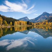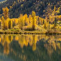 Cette route (CR3) est absolument magnifique. Elle longe la Crystal River et passe à côté de plusieurs lacs dont Beaver Lake. Environ 3 kms avant Beaver Lake, se trouve un petit lac, parfait pour photographier les reflets des montagnes environnantes. Ce lac est entouré d'arbres et en automne, les reflets sur l'eau sont splendides.