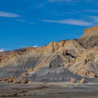 The road / track along these badlands is pretty nice. It presents no difficulty in dry except in one place where a high clearance car can be recommended. At the same place, the road may be impassable if it rained a lot before. This track comes very close to the Badlands. You can park almost anywhere and venture on the rocks. There is no trail, just go where you want.