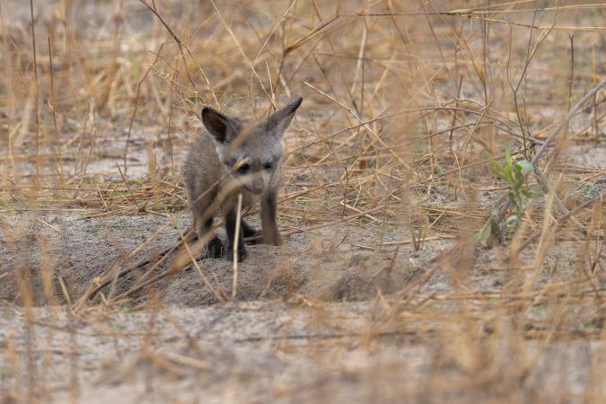 Une girafe se promène avec son jeune de 8 semaines, d’après notre guide. Tout à coup, on arrive à fond de train sur un genre de plaine et on est 4 dans la voiture à crier «stop, Newman». Il pile. Il y a deux otocyons. Aussi appelé renard à oreilles de chauve souris, ils sont à une dizaine de mètre de la voiture.