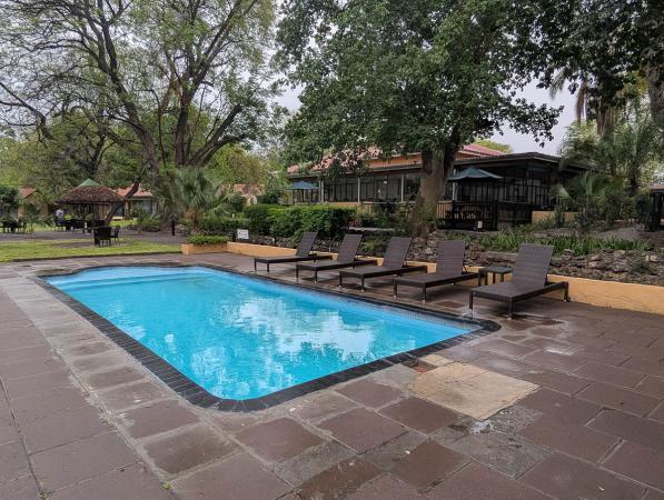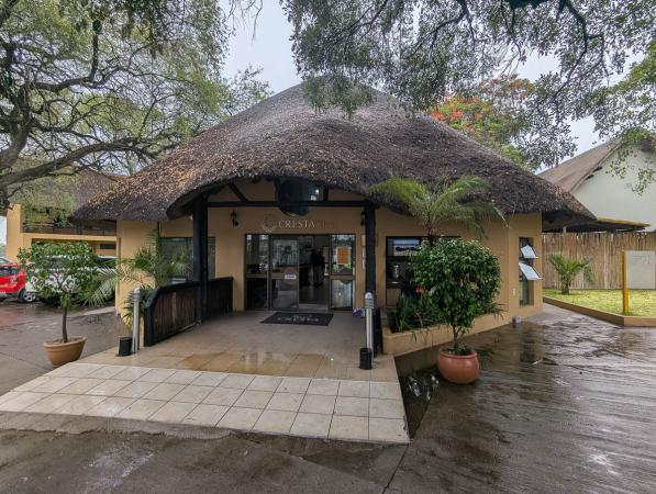 Vers 11h15, un léger repas est servi. On arrive à 13h05 à Maun au Botswana, après 2h30 de vol. On passe l'immigration et on doit remplir un papier. Le gars nous pose pas mal de questions sur l'itinéraire. On récupère nos bagages et on rejoint le gars du Cresta Riley’s Hotel. On a nos chambres à 14h00.