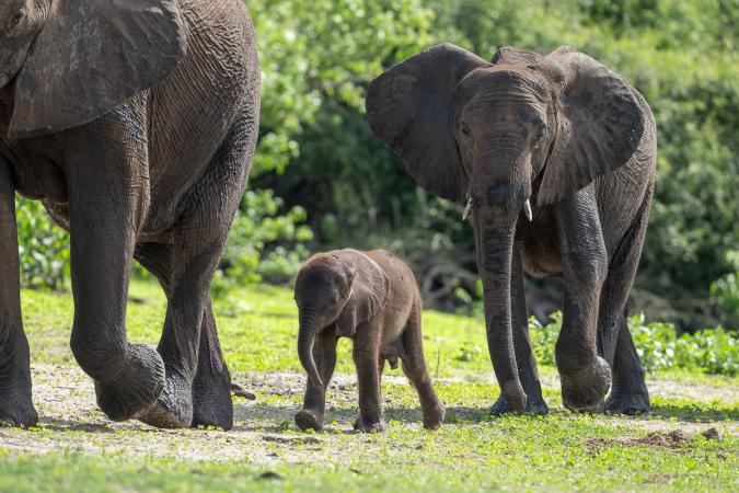 jacana à poitrine dorée. A bout d’1h30 de navigation, notre «souhait» se réalise : un troupeau d’une vingtaine d’éléphants longeant la rivière,