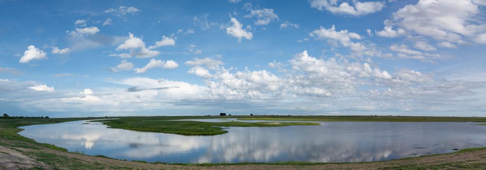 Cette partie de Chobe est très jolie avec la rivière et le contraste entre le vert de l’herbe et le bleu de l’eau et du ciel. Plus loin, un aigle pêcheur surveille on ne sait quoi du haut de son arbre.