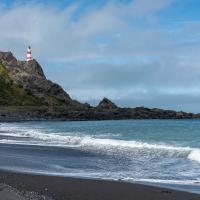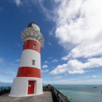 La route s'achève au phare de Cap Palliser. Haut de 18m, c'est le seul phare à rayures rouges et blanches en Nouvelle-Zélande. 253 marches sont à gravir pour atteindre son pied. De là, la vue sur la baie est superbe par beau temps. Les nuances de bleu dans l'océan sont alors bien visibles.