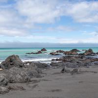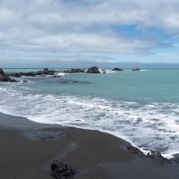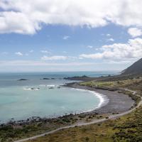 D'une manière générale, les routes sont belles en Nouvelle-Zélande. La Cape Palliser Road est encore un cran au-dessus, bordée d'un côté par la mer et de l'autre par la montagne. Même si des otaries sont visibles à Sea Lions Viewpoint, des otaries isolées peuvent être vues tout au long de la route sur les plages de sable noir. Ce sable et le bleu turquoise de la mer sont magnifiques. Nous avons eu la chance au printemps 2023 d'y voir également des champs de fleurs jaunes.