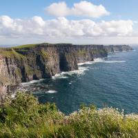 Les falaises de Moher sont un site naturel très touristique. Ces falaises sont impressionnantes et culmine à 214m de haut sur une longueur de 8 kms. Si vous aimez les oiseaux, pensez à prendre des jumelles car c'est un lieu où nichent les oiseaux marins, tels que les macareux.