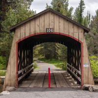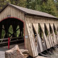 Joli pont couvert de couleur rouge. Même la "route" qui passe dessous est en bois. Ne pas s'aventurer plus de quelques mètres après le pont car vous entrez alors dans une propriété privée.