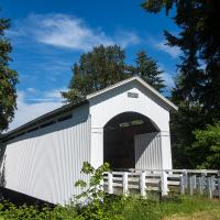 Accès : depuis Cottage Grove et la sortie 174 de la I5, prendre la Row River Road vers l'est (direction Dorena Lake), pendant 5 kms. Prendre à droite sur la Lang Road. Le pont est tout de suite à droite.