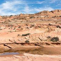 Accès : entre Kanab et Page, prendre la House Rock Valley Road pendant 7,2 kms et se garer au parking de Buckskin Gulch Trailhead. Si le wash est impassable en voiture, vous pouvez vous garer juste avant. Le départ du trail est à quelques dizaines de mètres.
