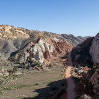 When we went to Colorful Canyon in September 2017, we combined the hike with Sidestep Canyon, which represents a 9 miles loop. The access walk is relatively flat but is done in sand and scrub. It is therefore not particularly interesting and seems very long. From Sidestep, head west along a fence to the Jeep Trail. Follow this track then turn left (for example GPS: N37 ° 09 '31.1 "W111 ° 44' 49.2" but you can also turn before) to Colorful.