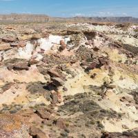 Old filming site destroyed several times. The very colorful badlands remain the only attraction of the area.