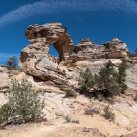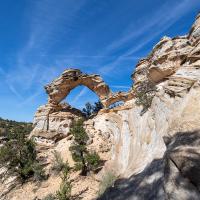 Access : from Kanab, take US89 east to Johnson Canyon Road. Follow it north for 9,5 miles. Then take a trail to the right, Nephi Pasture Road, for 8 miles. From there, it is better to have a 4WD because it becomes sandy. Take a new track on the right for 1 mile. Turn left at the hairpin. From there, it is better to have a 4WD with a high ground clearance. Continue for 1,6 miles to the parking lot. A few signs sometimes indicate the direction of the arch.