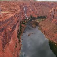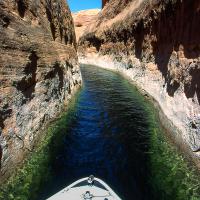 Le Lac Powell est un lac artificiel créé suite à la construction, sur la rivière Colorado, du barrage de Page au début des années 60.