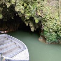 La visite des Waitomo Caves dure 50 minutes. Elle commence à pied et le guide montre quelques formations, notamment une grande salle appelée "cathédrale" où il fait entendre sa résonnance en poussant la chansonnette. Puis, les visiteurs prennent place dans une barque qui navigue dans le noir et un silence complet. Au plafond, des milliers de vers luisants semblables à des étoiles. Malheureusement, il est impossible de prendre des photos.