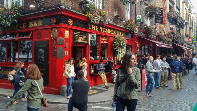 The buildings are pretty beautiful. Dublin is much built of red and orange bricks. Some streets are a bit dirty. We walk 6 kms before stopping to eat at the Thunder Road Cafe on the busiest street, Temple Bar Street.
