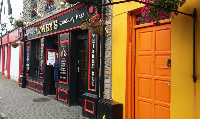 There are sheeps on the roads. We find our hotel in the city of Clifden : The Inn to the West. It's nice. The room too. There is a relaxation room, a kitchen and a place to eat. It's half-way between a hotel and a youth hostel. Around 4:30 pm, we enjoy a better weather to visit Clifden. It's a succession of bars and restaurants. Houses are of various colors.