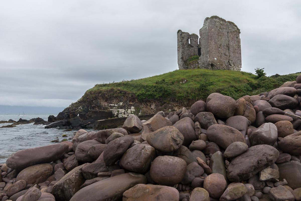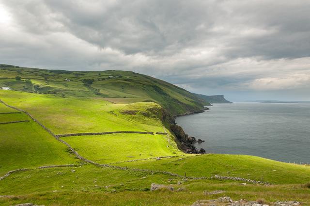 Optical ilusion or magic ?!! After playing for a while, we hit the road to Larne. We bypass Belfast with no problem. Then we stop often along the road to take pictures of the coast : Larne, Ballygally, Glenarm where there is a marina and a church, Glenariff. From here we reach Glenariff Forest Park. At 1 pm, we start the Waterfalls Walk, 3 kms long with 3 nice waterfalls. Some parts of the trail are closed. The whole walk is on pontoon, there is no way to get closer to the falls. Damn. Then we take the View Point Walk of 0,6 kms, but there is nothing to see. We return to the coast where the sky is overcast with a few rain drops. We drive on the Torr Head Road, which really climbs. We stop at Torr Head. Access is via very small roads. We dress with our windbreakers to go up the hill where there is an old red bricks building. We somtimes can see the sun which gives a very nice light that lighten the green grass.