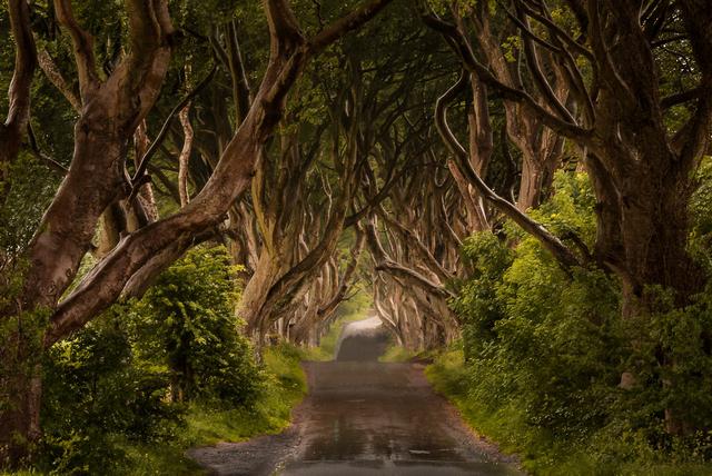 We leave in the rain. We arrive at Dark Hedge, the alley of enormous trees which served as decoration to the series "Games of Throne". It rains a lot and we are rinsed. We go back a little in the car while waiting for it to pass. When the rain finally stops, we take pictures.