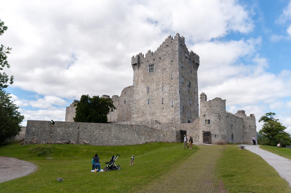 Sunday july 3 : no rain this morning ! We go to O'Sullivan Cascade. We take a road that becomes a rocky track with holes. We don't go any further with this car with a low clearance. Furthermore, we are not sure that the waterfall is here. We join Killarney. We visit the huge cathedral, which is impressive, and the city. It's quite alive for a sunday morning. At 11:30 am we leave for Ross Castle. Sunny, covered, warm, 20°. We make a walk around the castle.